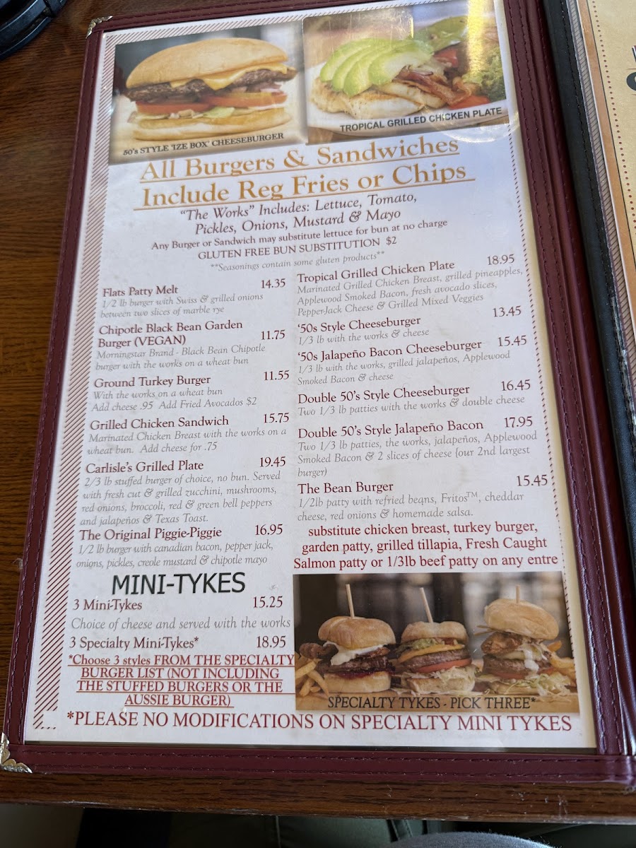 Choose 3 styles from the specialty burger list (not including the stuffed burgers or the aussie burger). No modifications on specialty mini tykes please!