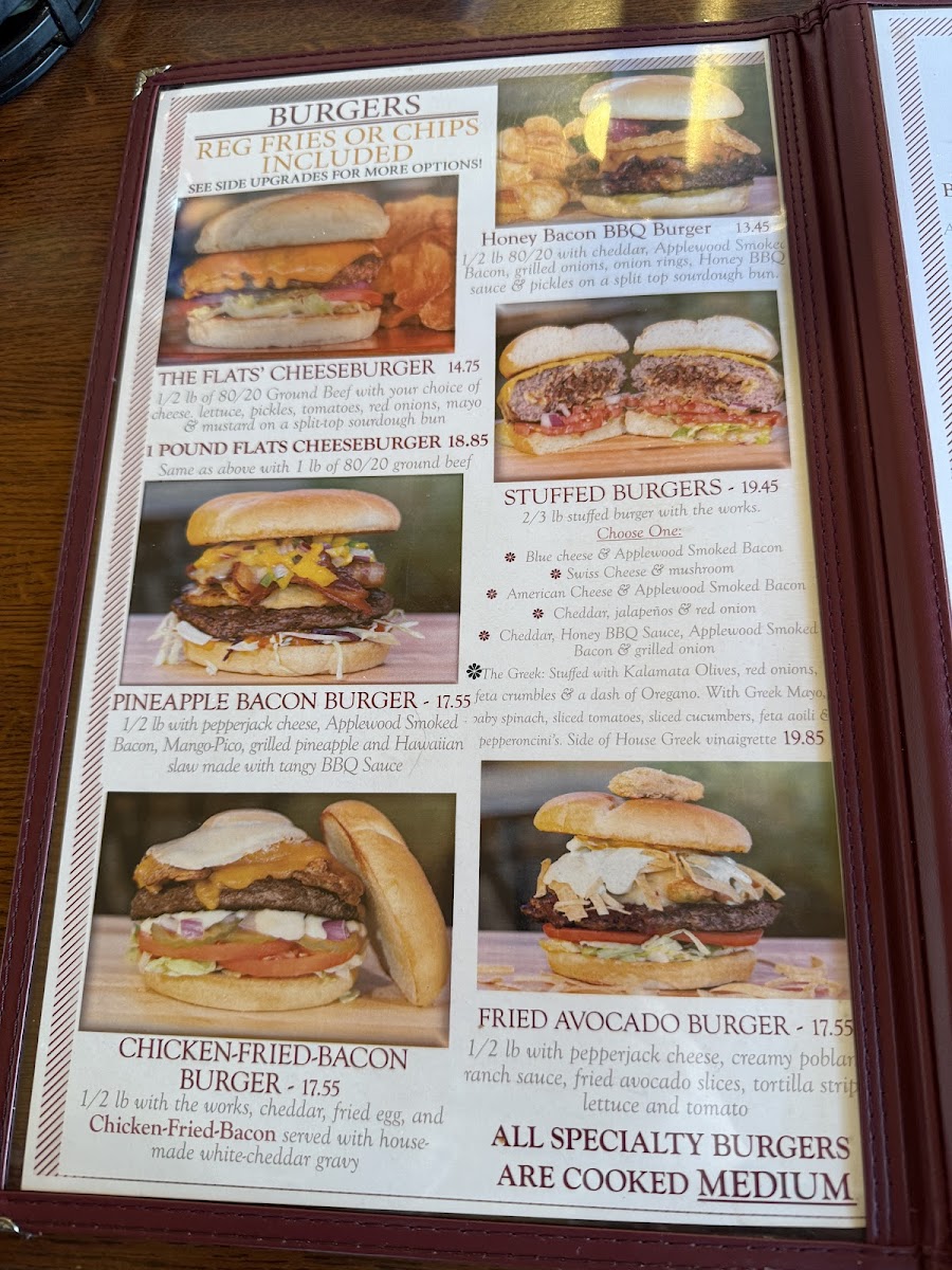 1/2 lb with Flats Queso, fresh housemade guacamole, lettuce, tomato & fresh pico de gallo