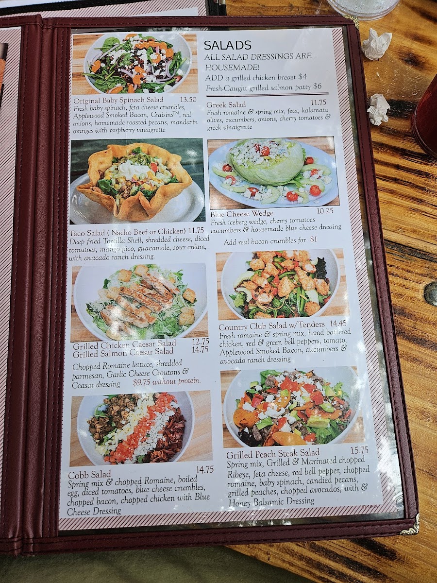 Fresh baby spinach, feta, Applewood Smoked Bacon, Craisins, red onions, roasted pecans, mandarin oranges & raspberry vinaigrette